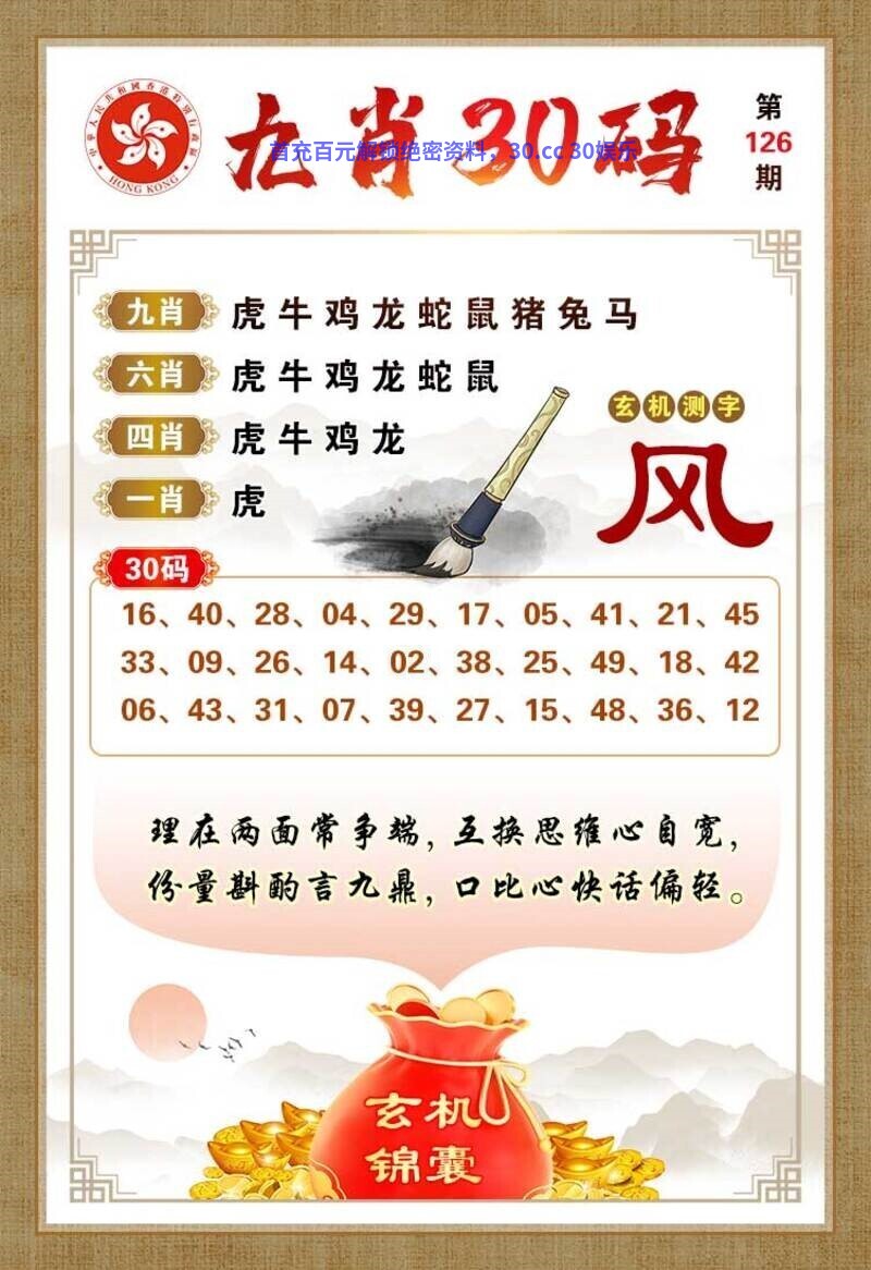 126期⑨肖:虎马牛蛇龙狗猪猴:开兔39